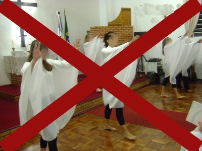 Dói muitas vezes escutar e por outras ver, a Santa Missa ser transformada em uma manifestação teatral, em nome da 'inculturação', que para a maldita Teologia da Libertação e para muitos grupos da Renovação Carismática, tornou-se uma abertura para evangelizar, esquecendo-se que a Liturgia Romana, o rito Latino, não inclui a dança no durante o culto liturgico.